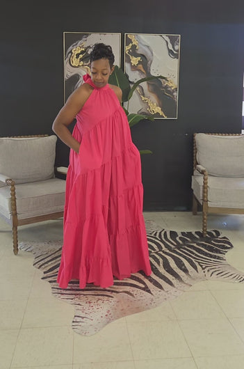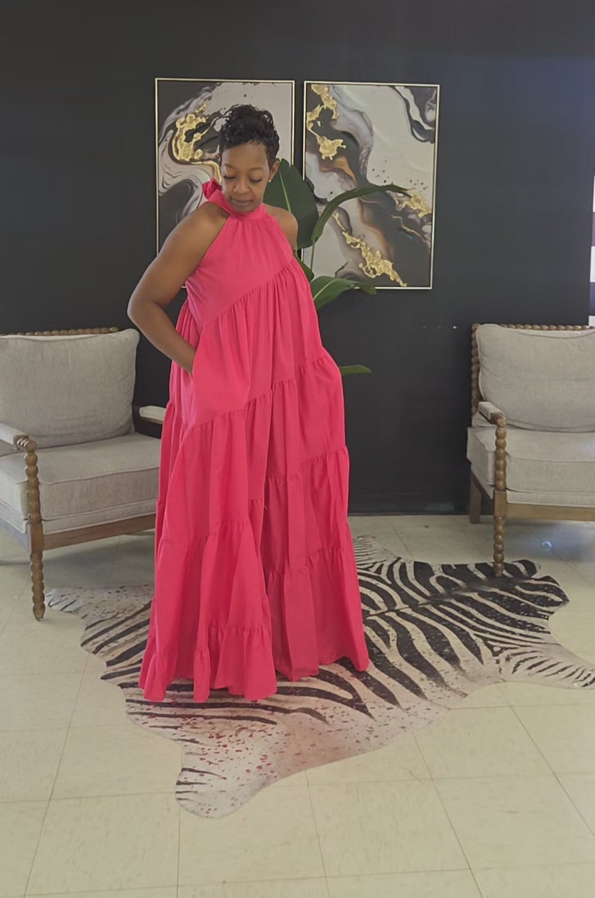This sleeveless maxi is almost floor length and ties at the back or side.